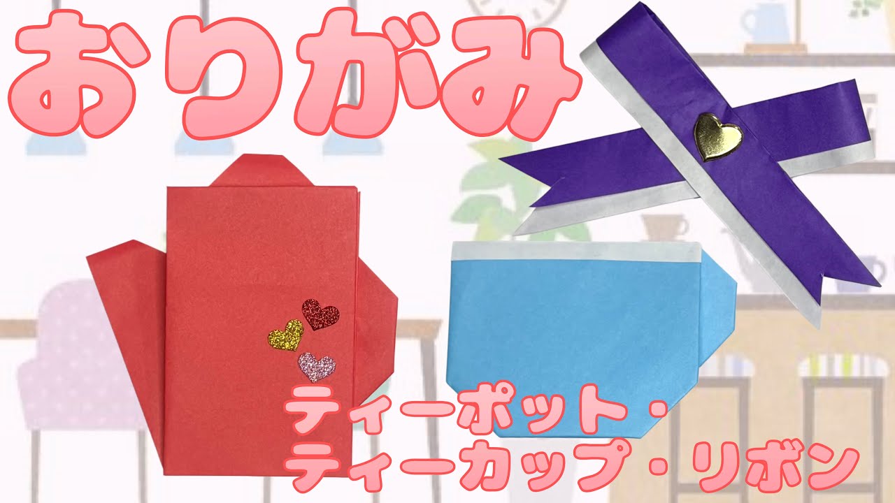 タイトル | 【折り紙】ティーポット・ティーカップ・リボン の作り方 折り方 折り紙 簡単で可愛い工作 How to make a teapot,teacup and ribbon origami |